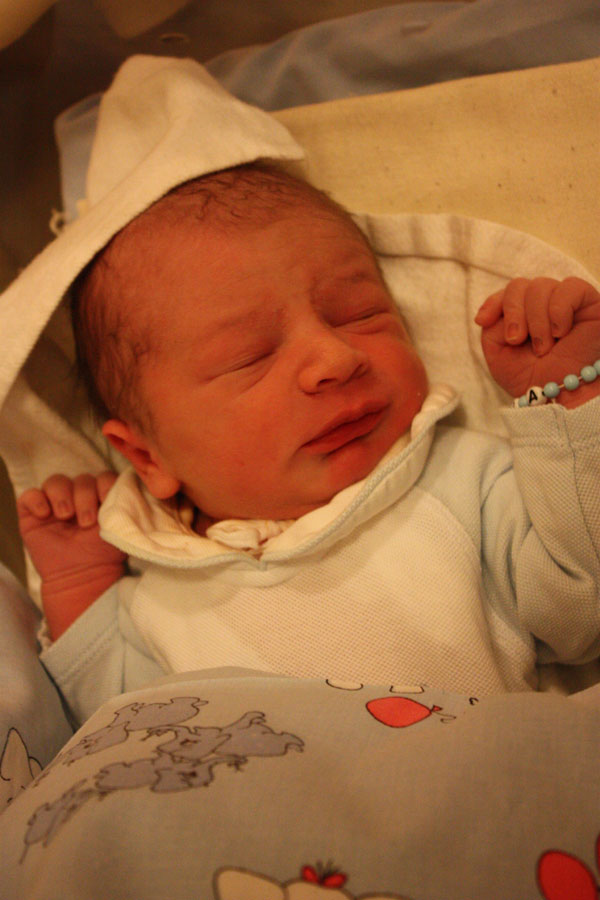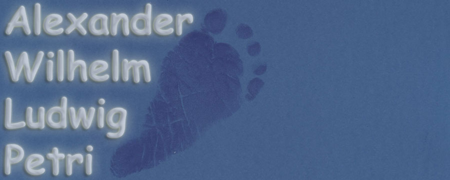...Guten Morgen liebe Welt, ich bin der kleine Prinz, Alexander Wilhelm Ludwig, diese Namen haben mir meine Eltern gegeben, die Ihr links und rechts von mir seht. Das iss ganz schön hell hier draussen, die haben mich nämlich erst vor einer Stunde aus meiner Höhle in der Mama rausgeholt... ...und Mama und Papa sind wohl scheinbar ganz Stolz! |